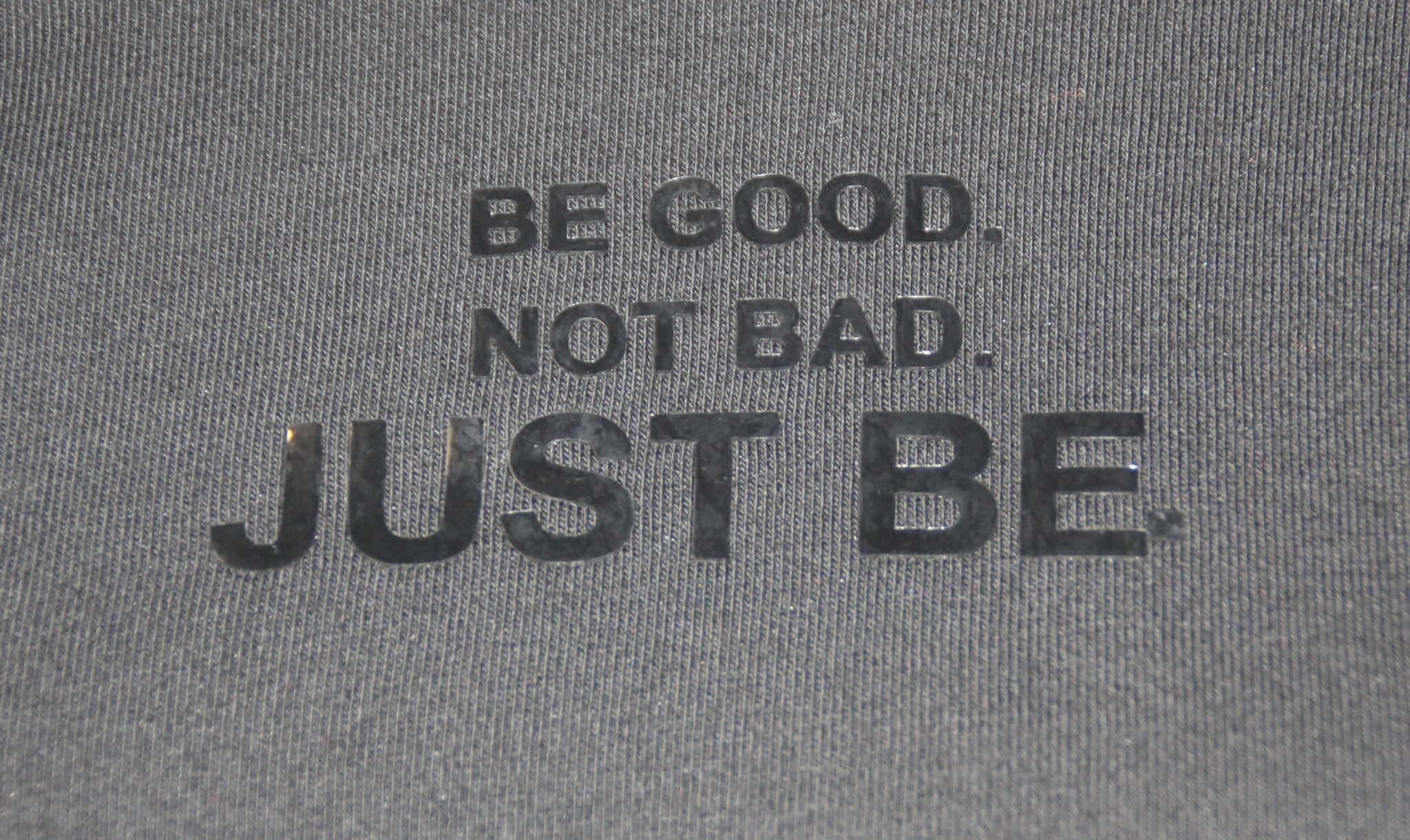 Black sweatshirt that reads "Be Good Not Bad Just Be" on the front with matching pants featuring pocket accents